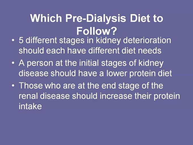 To follow a low-protein diet. Being on dialysis changes this. Most people on dialysis are encouraged to eat as much high-quality protein as they can. Protein helps you keep muscle and repair tissue. The better nourished you are, the healthier ... Read Here